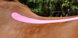 Das Kinesiotape wird auf das Fell aufgebracht und stimuliert über die Haut die Nozirezeptoren und trägt somit zur Schmerzlinderung bei.